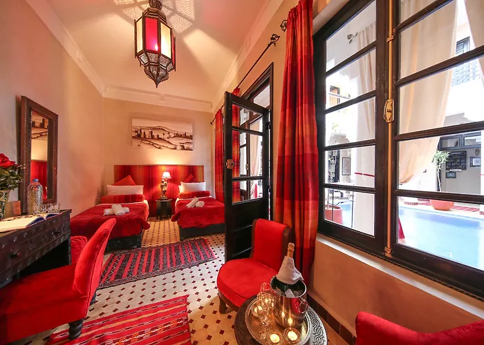 Dar Anika, ubicado a solo 5 minutos de la plaza Jamaâ El Fna, es conocido por su atención al detalle y decoración marroquí única. Este riad ofrece un patio encantador con piscina y un ambiente acogedor que invita a los huéspedes a relajarse. Adicionalmente, se ofrece un servicio de cocina marroquí tradicional y una atención al cliente excepcional que garantiza que cada estancia sea memorable.